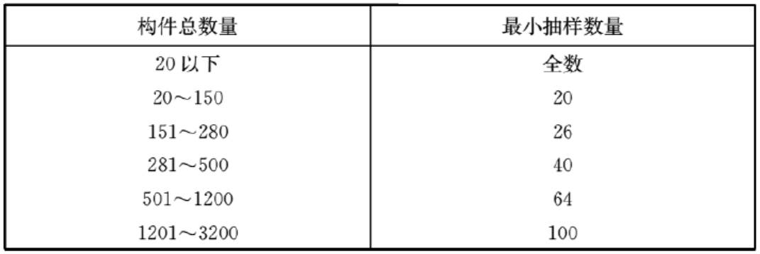 (2)當檢驗項目的合格率小于80%但不小于70%時,可再抽取相同數(shù)量的構(gòu)件進行檢驗;當按兩次抽樣總和計算的合格率為80%及以上時,仍可判為合格。